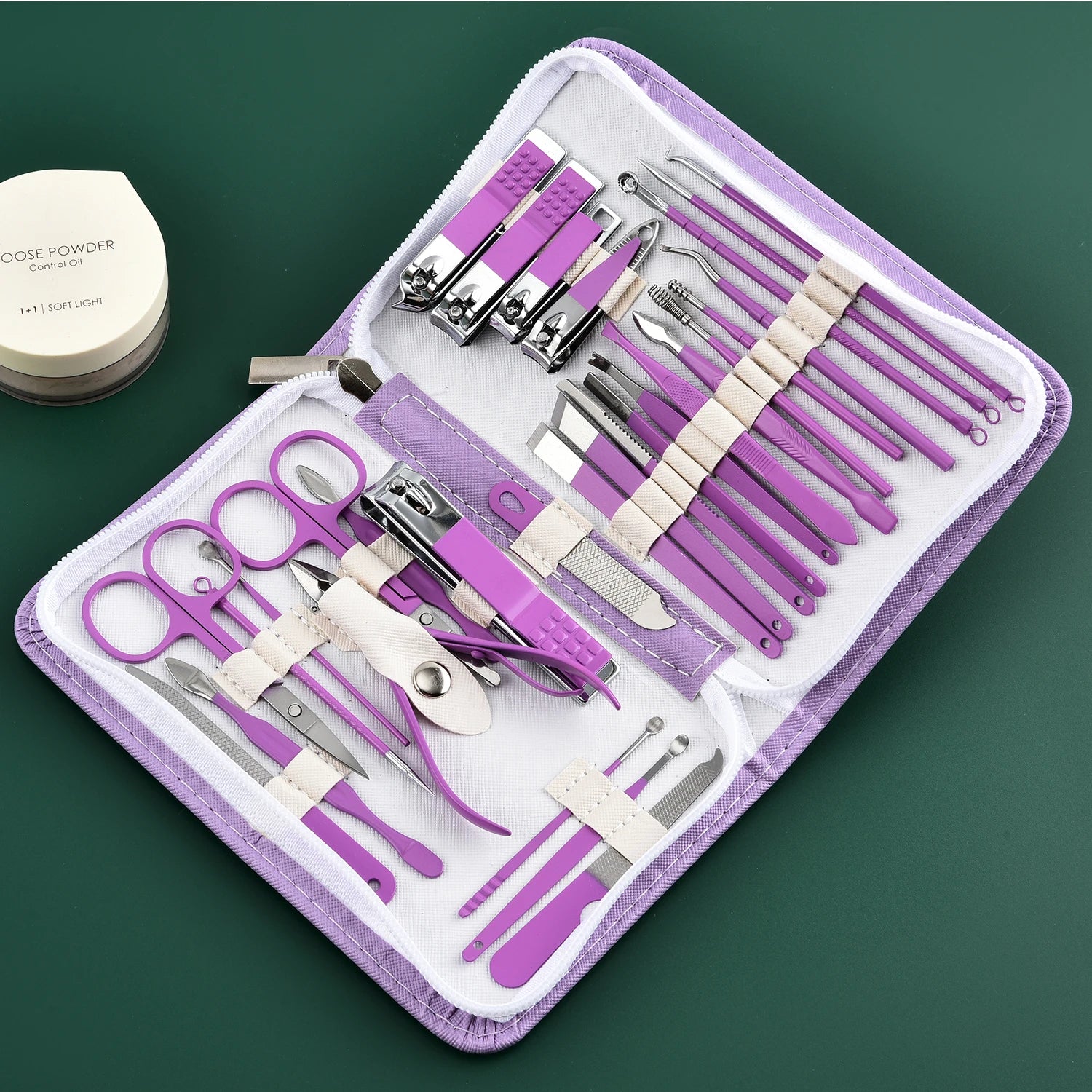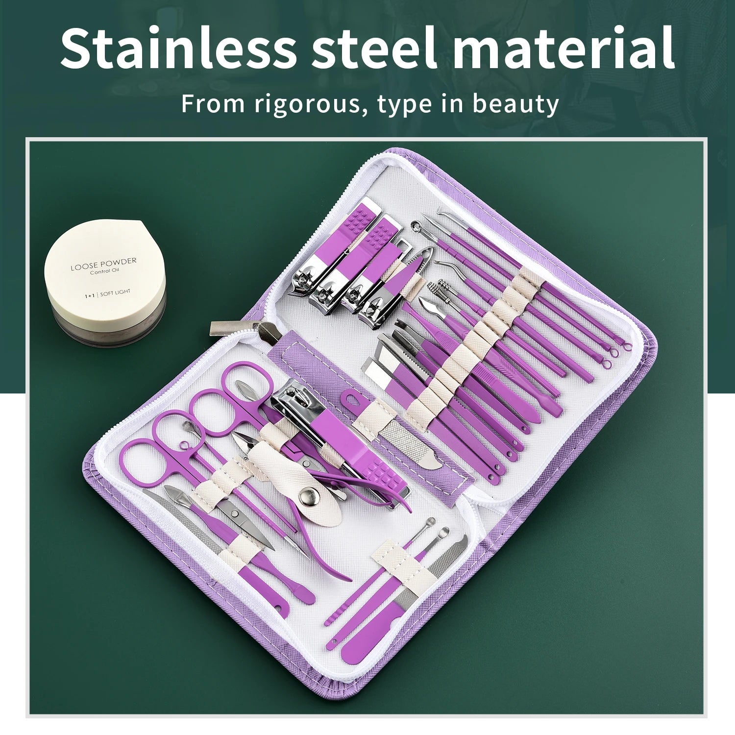 30Pcs Nail Clipper Set Purple Set Manicure Set Anti Splash Fingernail Cutter Stainless Steel Nail Scissor Cuticle Tools