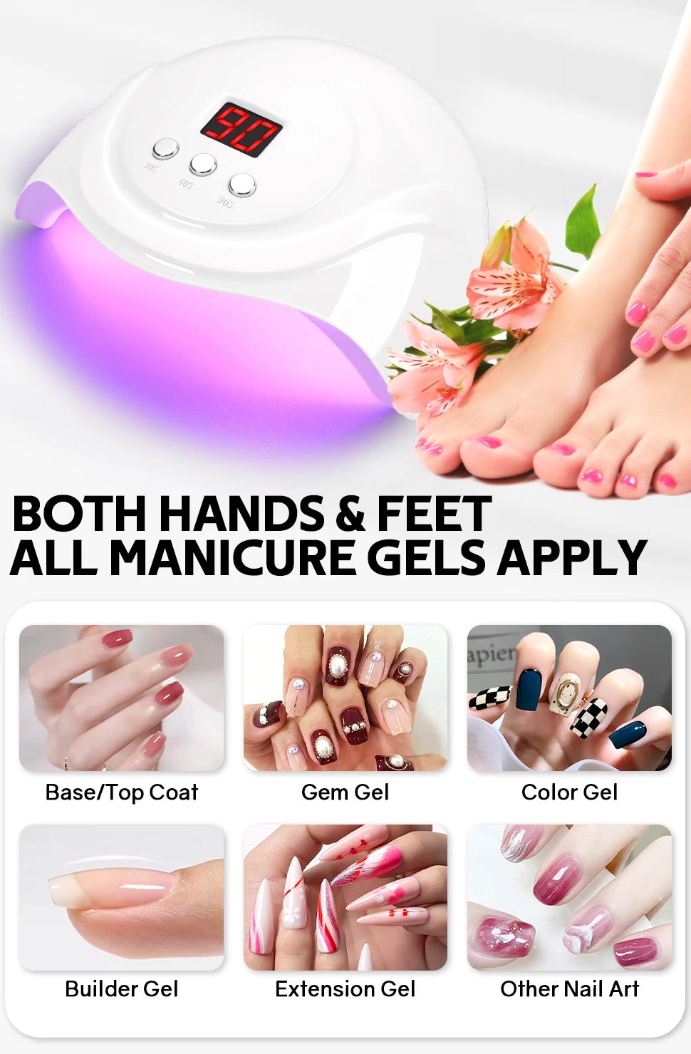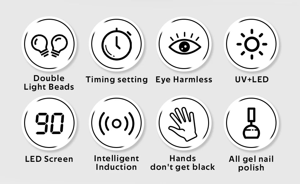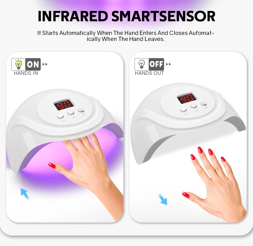 【3 Timer & Infrared Sensing】Use the LCD display to see the timing more clearly. The UV led nail lamp has three timing buttons: 30s/60s/90s, you can choose different curing time according to different GEL nail polishes.