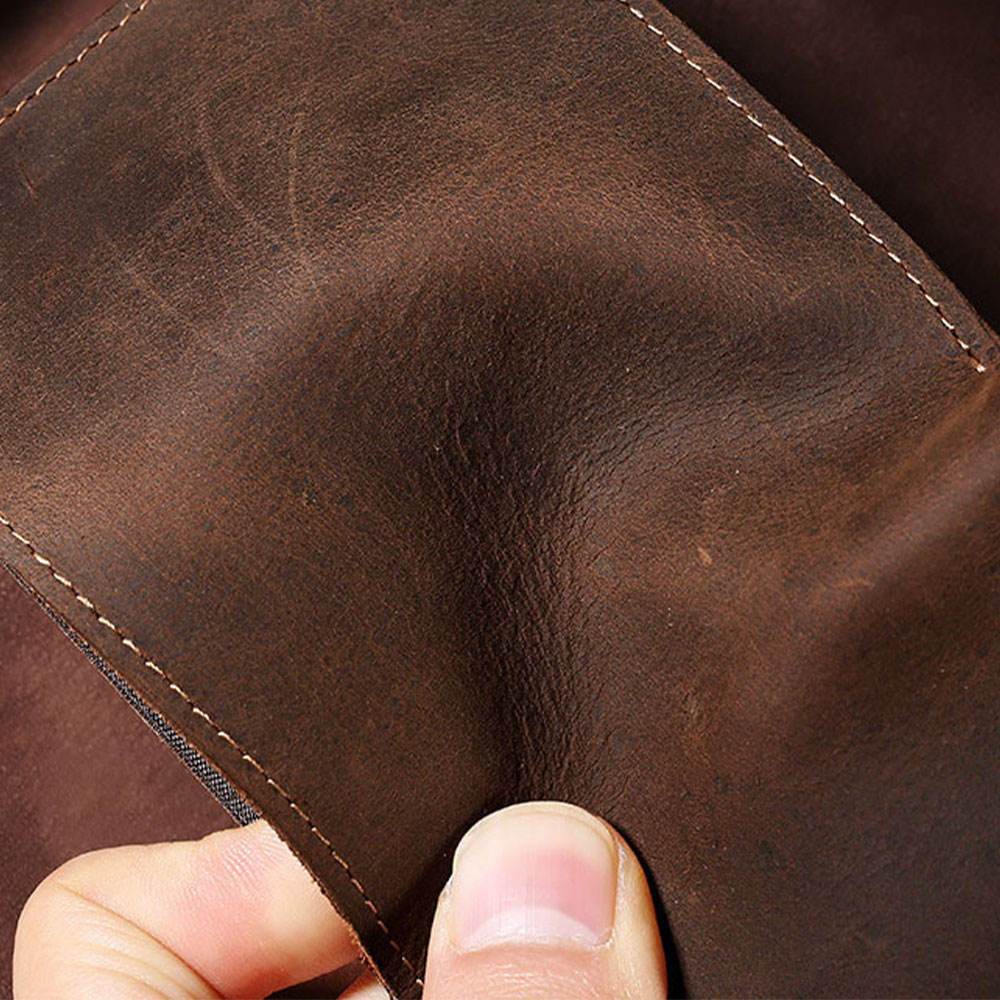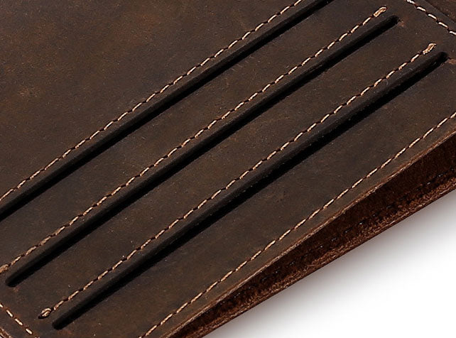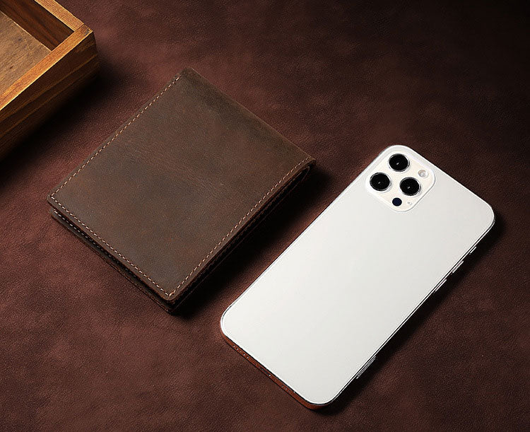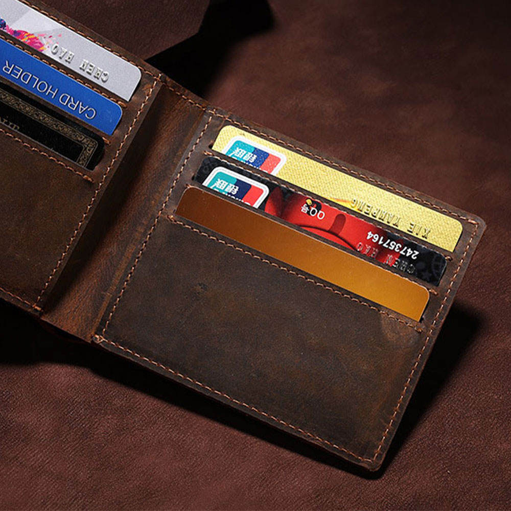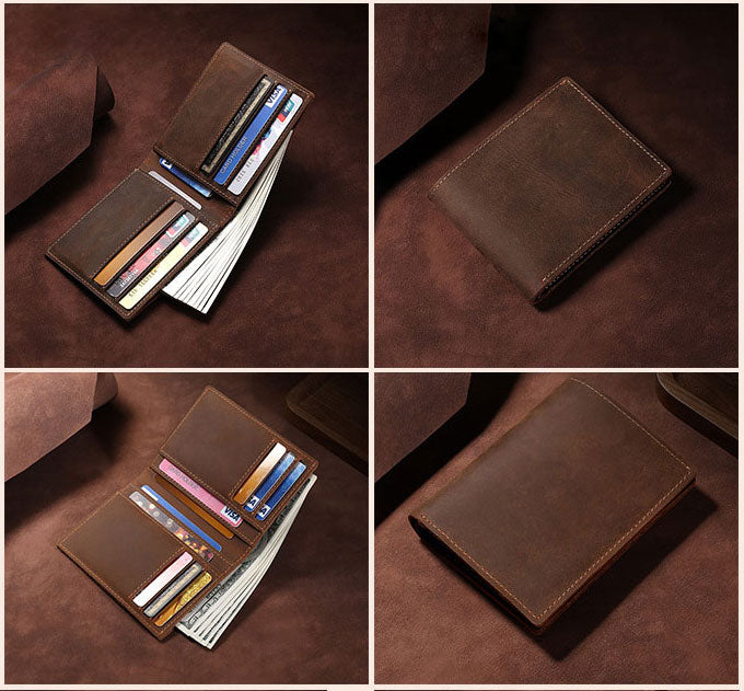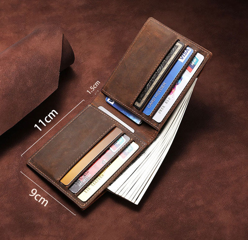 This Crazy Horse Men's Short Wallet is made of high-quality vintage genuine leather, making it both stylish and durable. Its multi-functional design allows for easy organization and storage of cards and cash. Expertly crafted, this wallet is perfect for the modern man looking for a stylish and practical accessory. Leather Wallet