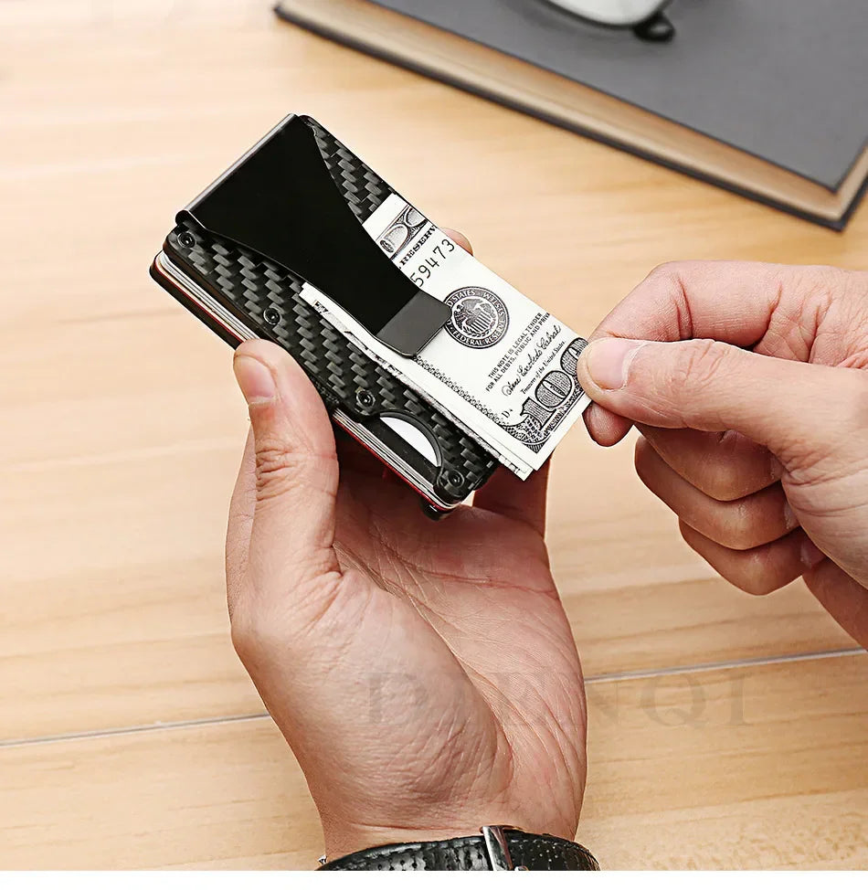Rfid Carbon Fiber Metal Card Holder Wallets Men Slim Thin Mini Wallet Male Money Bags Small Minimalist Male Purse Walet for Men
