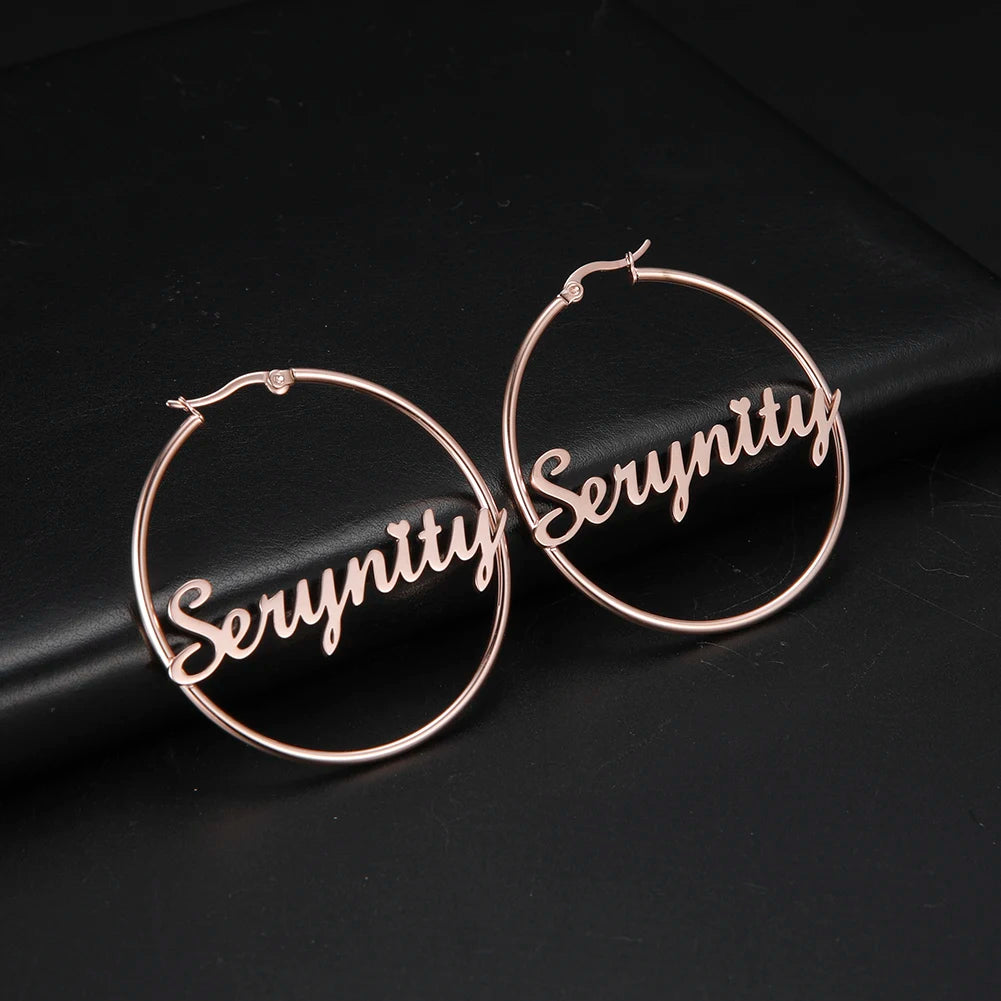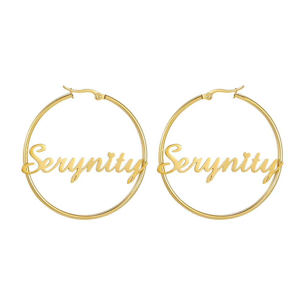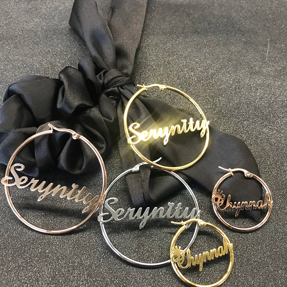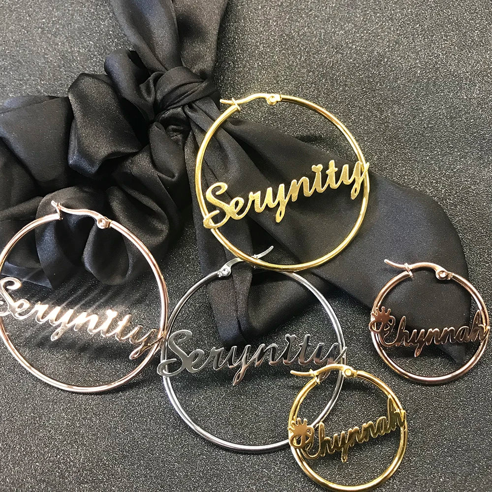 Sipuris Stainless Steel Personalized Customize Name Hoop Earrings Jewelry For Women Girls Circle Earring Fashion 30-60 MM