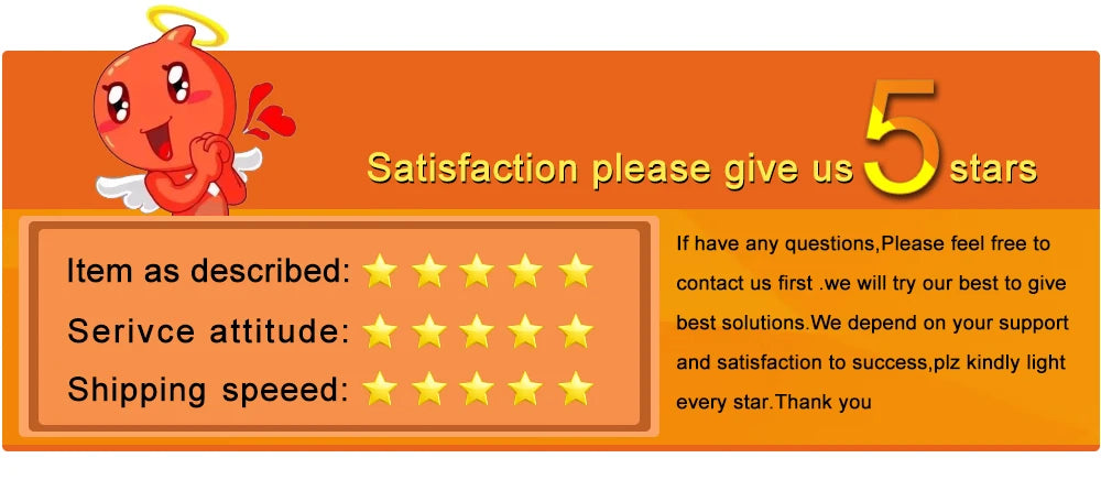 We maintain high standards of excellence and strive for 100% customer satisfaction! Feedback is very important to us. We request that you contact us immediately BEFORE you give us neutral or negative feedback, so that we can satisfactorily address your concerns as soo as possible. It is impossible to address issues if we do not know about them! Plz give us 5 stars feedback, thank you.